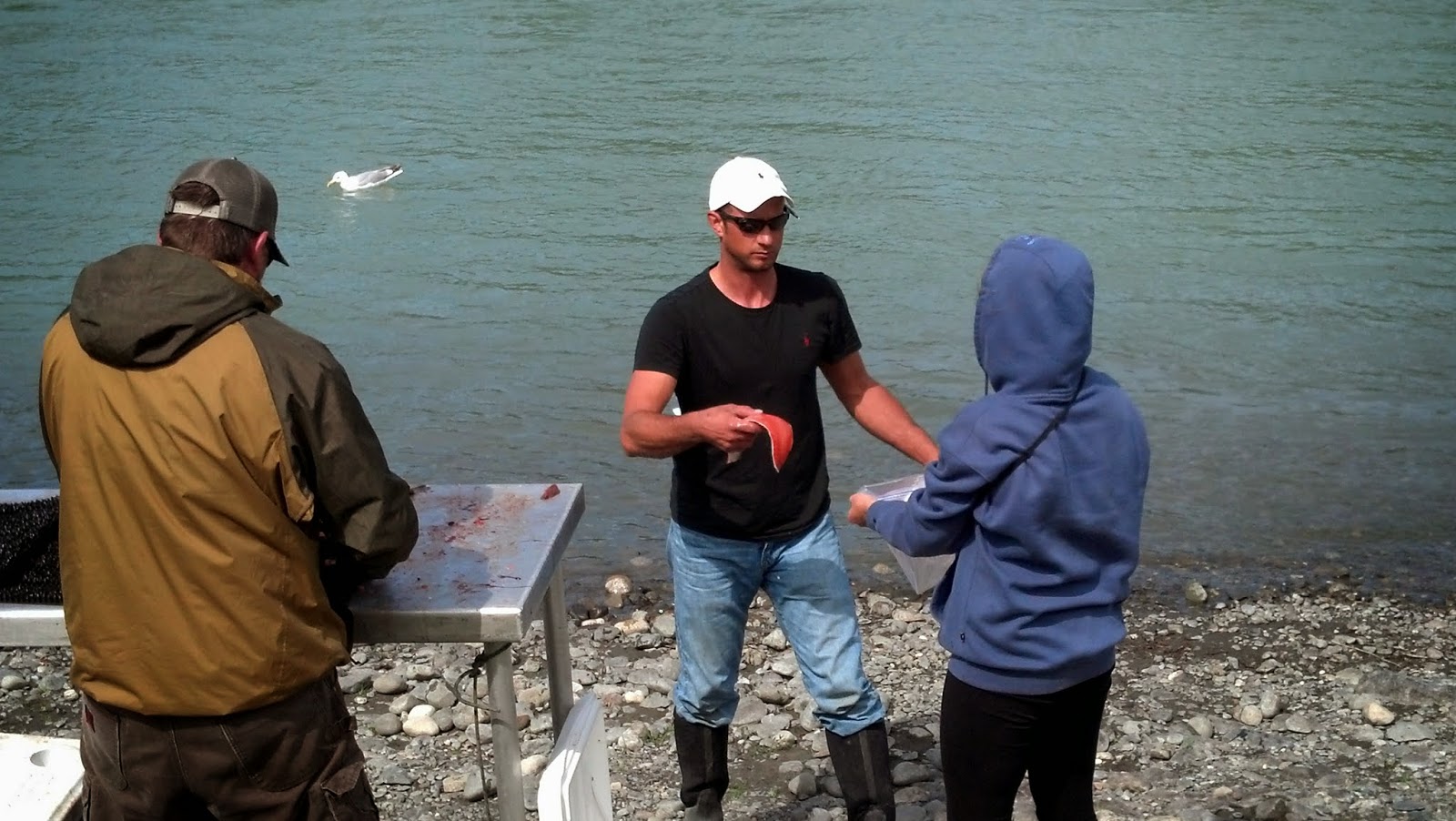 6/29/14 we moved over to Soldotna, about 5 miles away. We are now staying at the Edgewater Lodge and RV Park on the Kenai River and we'll be here for several days. Joe is going King Salmon fishing when the season opens up on July 1st with a guide. Down at the river were some people that had been dip net fishing on the upper Kenai and had several ice chest's full of salmon that they were cleaning. We were very lucky, being in the right place at the right time, they gave us a couple of filets which we BBQ'd that night, and of course they were so good, I'm surprised that we had some left over which will make a great sandwich.