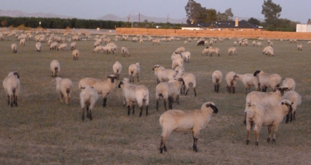 Sorry for the bad picture. These goats are trained to somehow go out in the herd of sheep and then bring the sheep up to the pens.